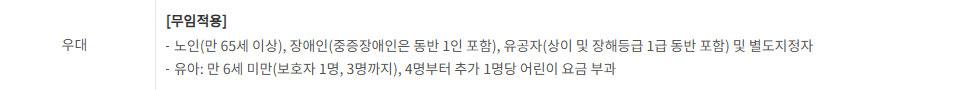 단, 시외버스 고속버스는 적용되지 않으며, 지역별로 우대 범위에 차이가 있습니다.
