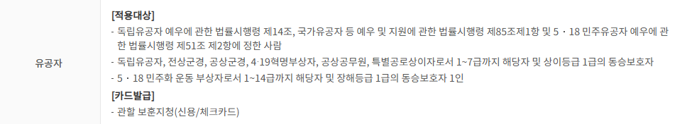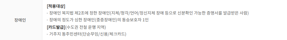 - 관할 지역에 따라 '무임권', '경로우대 일반 교통카드' 등 차이 존재