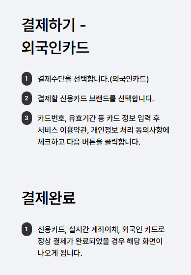 - 결제카드는 미리 등록해 두면 결제 단계에서 시간 단축
