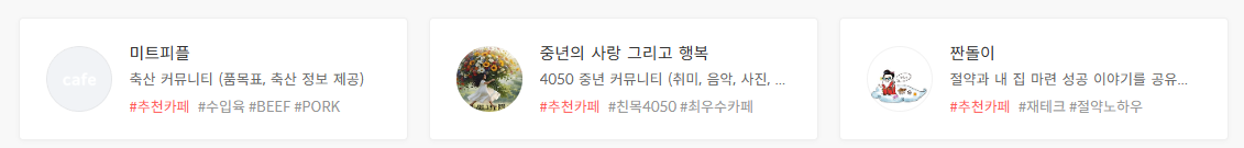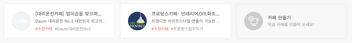 저는 커뮤니티 활동이 많은 카페 3개를 홈 화면에 올려두고 앱 없이도 다음카페 바로가기를 통해 접속하고 글 확인합니다.
