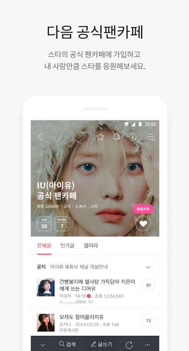 - 플레이스토어나 앱스토어에서 다음카페 앱 설치