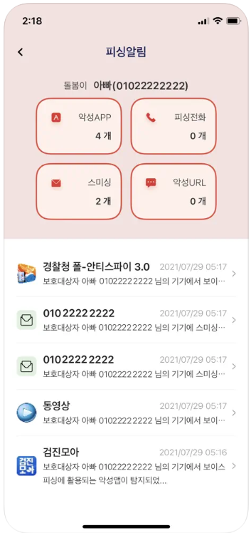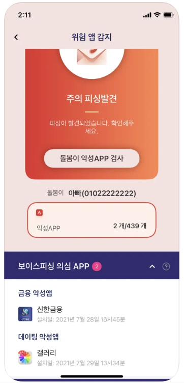 - 스미싱 탐지, 악성 번호 자동 차단, 의심 문자 실시간 알림 설정