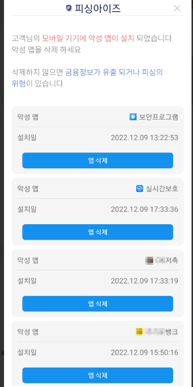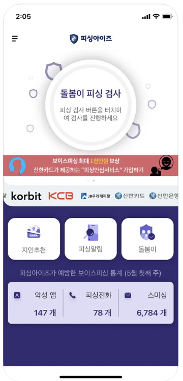 - 피싱아이즈 앱: 의심 전화, 스미싱 문자, 악성 URL 탐지 차단 ➡ 내 금융 정보와 개인정보 보안 책임