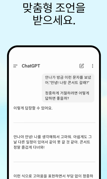 - 공식 ChatGPT 앱 설치 (iOS/안드로이드 모두 지원)
