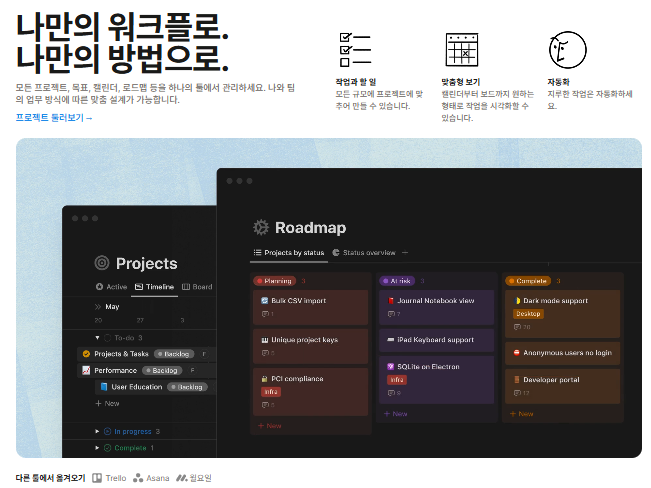 - 블로그 기획, 공부 노트, 작업 목록 등과 연동 가능