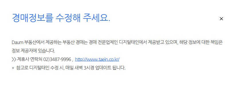 - 모든 경매정보는 매일 새벽 3시경 업데이트되며, 실시간 반영되는 데이터는 제휴사 디지털태인이 직접 관리합니다.