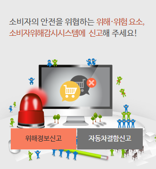 신고 소비자의 안전을 위협하는 위해, 위험 요소, 소비자위해감시시스템에 신고해 주세요! !-- 24.12.30 이승진 링크 공사 페이지 위해정보신고 자동차결함신고 --