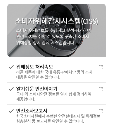 - 리콜 제품 검색: 내가 사용 중인 제품이 리콜 대상인지 확인 가능